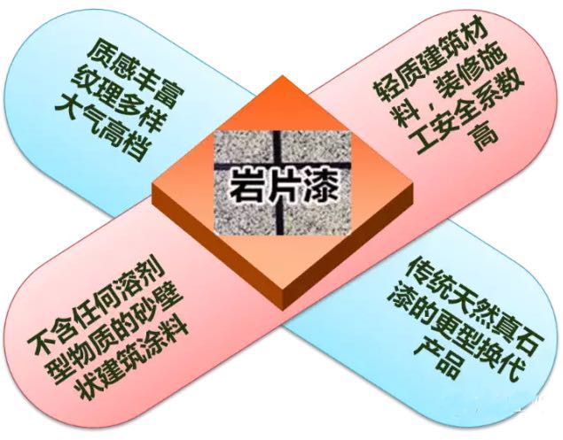 岩片漆,也叫仿花崗石漆、花崗岩石漆,是不含任何溶劑型物質的砂壁狀建築塗料,是傳統天然真石漆的升級換代品種。