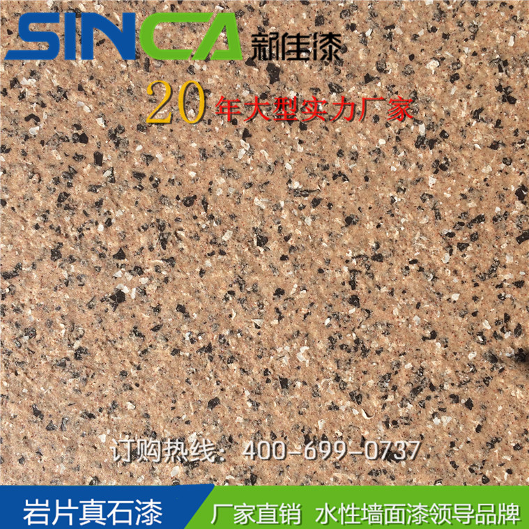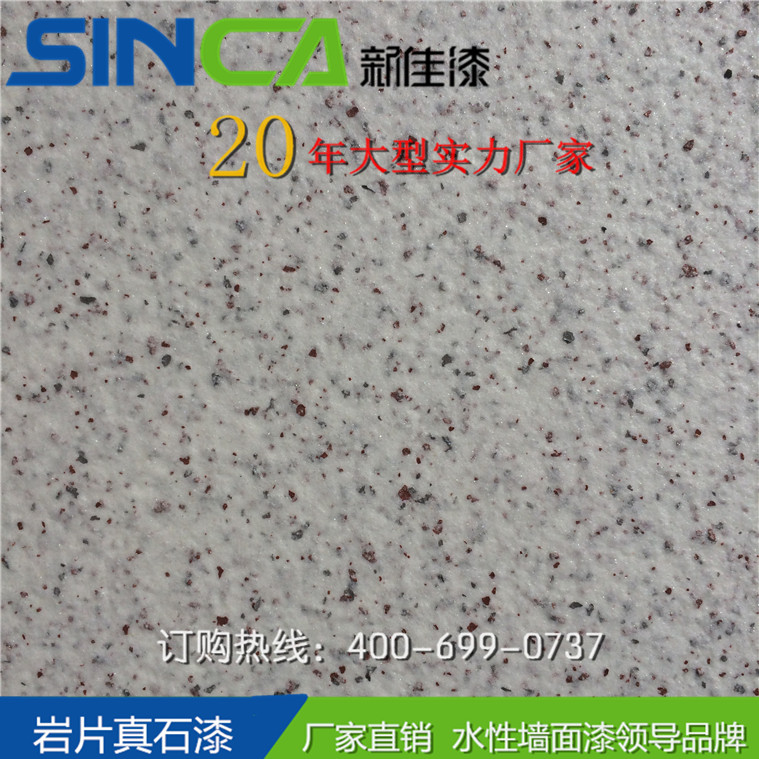 新佳岩片漆是最能展現天然花崗岩特色的新一代牆面水性環保岩片漆。因此岩片漆,也叫仿花崗石漆、花崗岩石漆,採用天然彩砂,水性高分子樹脂及合成岩片複制而成。具有超強附著力、防水性、抗污性、耐候性,能夠逼真展現花崗岩紋理效果,完全媲美天然花崗岩的質感。屬新型純水性化的不含任何溶劑型物質的砂壁狀建築塗料,富有花崗岩的風格,花崗岩的内涵,花崗岩的高貴,花崗岩的品位,是傳統天然真石漆的升級換代品種。